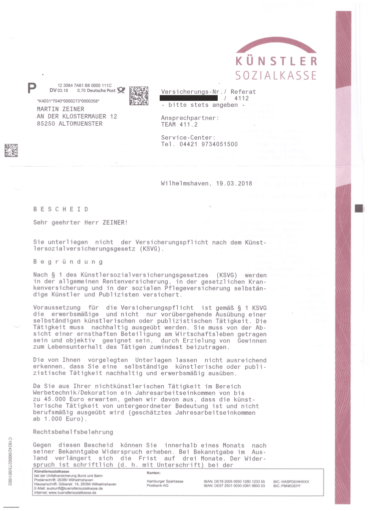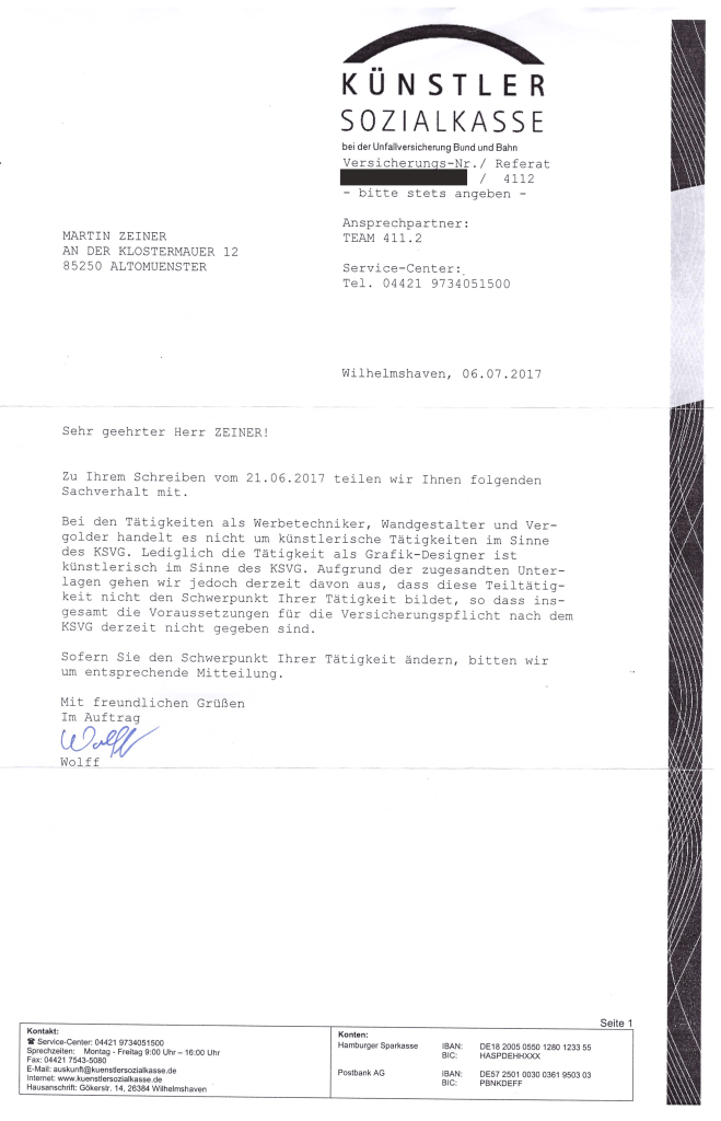 Aus diesem Grund sind unsere Kunden nicht verpflichtet, Abgaben an die Künstlersozialkasse zu zahlen!